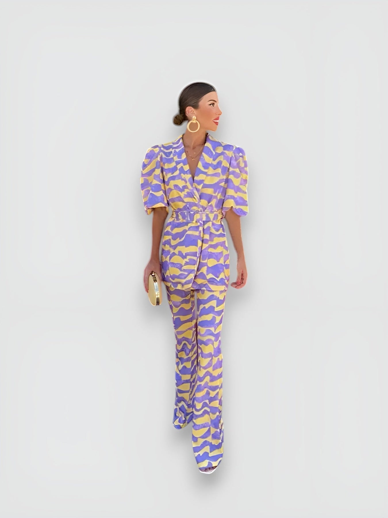 Style, versatility, and elegance in one set. The Dina two-piece co-ord combines comfort and sophistication, consisting of an elegant blouse and matching trousers, perfect for any occasion, from casual to formal.